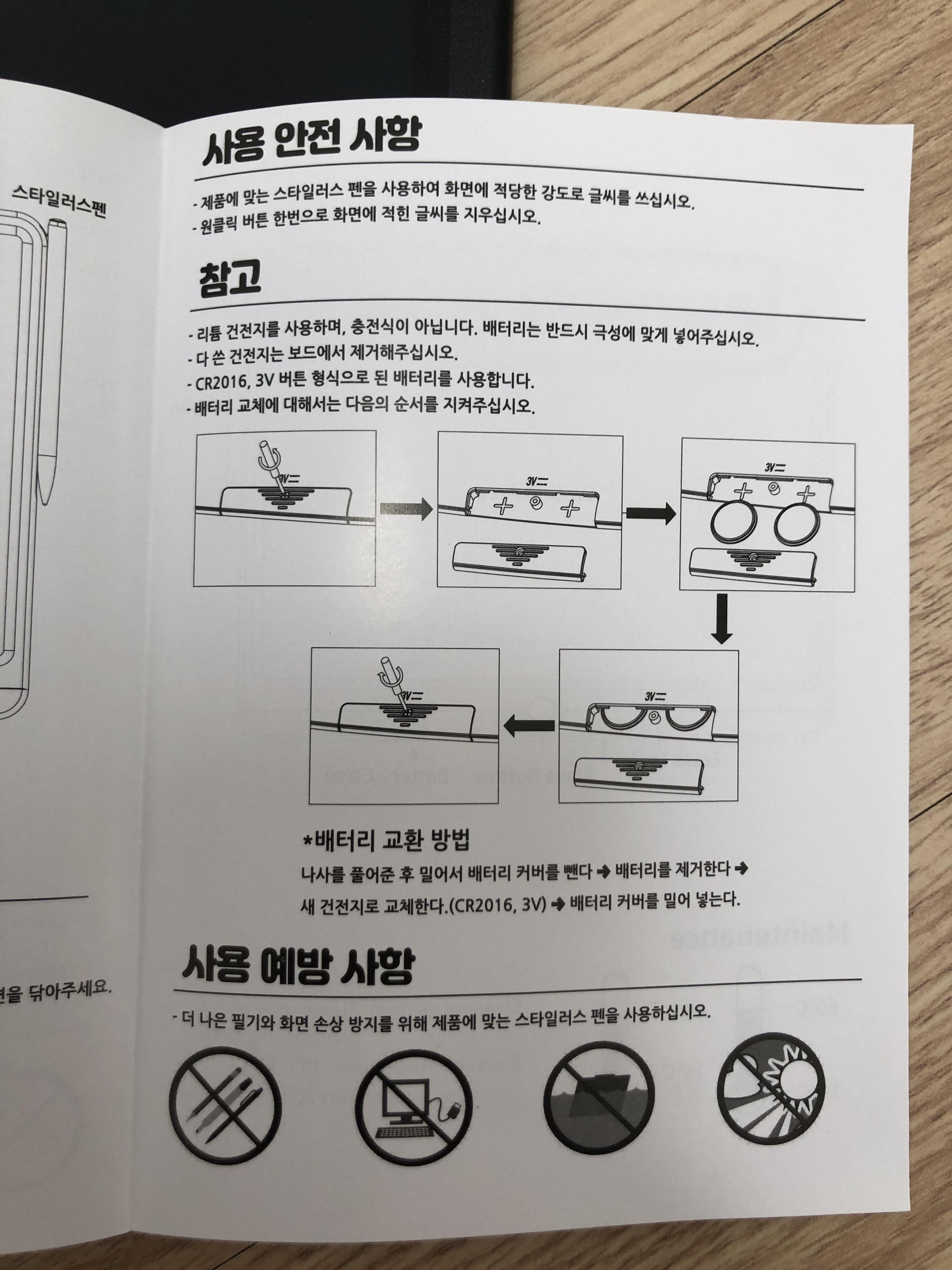 거의 무한대로 건전지를 사용할 수 있는 제품이다보니(쓸 때 전력 소모X, 지울 때만 있음), 한 번 지울 때 전체 화면이 모두 지워지는 단점이 있습니다.